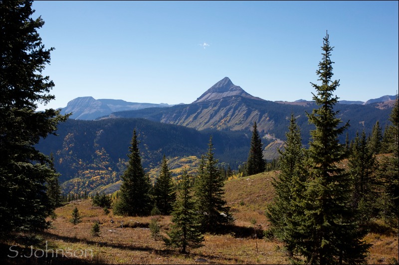 This is heading back to N. Timp. We are still on the north side of the drainage heading east, well before cutting back across the draw. The trail heads through this lovely stand of aspen before dropping down on its approach towards the cutback part of the trail.